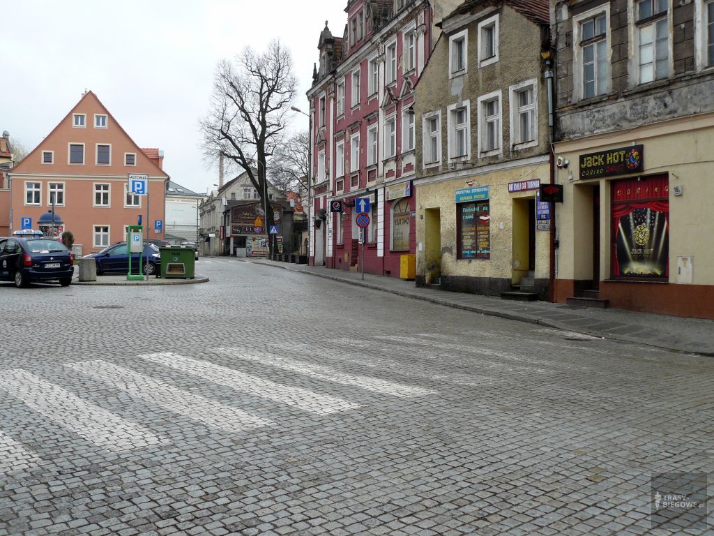Na ulicy Jedności zmienia się nawierzchnia i pojawia się około 300 metrów kostki brukowej. Jedności odbija lekko w prawo a na jej końcu trafiacie na plac Pocztowy. Tutaj nawierzchnia zmienia się znowu w asfalt a Wy kierujcie się cały czas prosto, aż traficie na ulicę Drzewną. Za Wami 1 kilometr trasy. Ulica Drzewna to również kolejny podbieg, którego koniec wyznacza ostry nawrót w lewo i skręt w ulicę Kupiecką. Kupiecka jest długa ale Wy zwiedzicie wyłącznie jej 100 metrowy odcinek. Dalej w prawo, kolejnym ciasnym zakrętem zmienimy ją na plac Jana Matejki. Z placu odbijając lekko w lewo kierujcie się na ulicę Bolesława Chrobrego, gdzie znajdziecie ostatni 250 m podbieg na trasie. Kolejny skręt w lewo i jesteście na ulicy Bankowej.