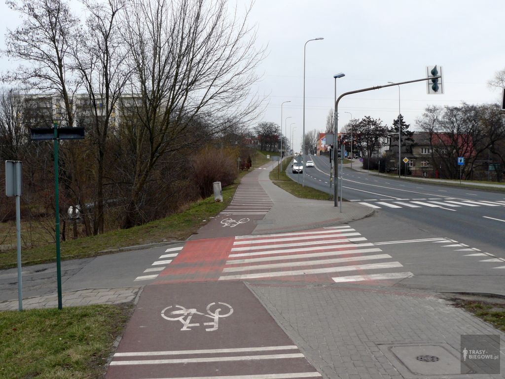 Ostatnie 500 m trasy płn to lekki podbieg. Na rondzie skręcamy w lewo by trafić na ulicę Zjednoczenia. To tutaj pokonamy kolejne 2 km w podbiegu przez nowo wybudowane ścieżki zanim dotrzemy do połowy trasy. Podbieg nie jest mocno nachylony ale jego długość wystarczy, aby nogi dały Wam o sobie znać. Jeśli nie lubicie oddawać tempa to jego utrzymanie na tym odcinku przypłacicie podwyższeniem rytmu Waszego serca. Po drodze miniecie kilka przejść dla pieszych oraz bocznych ulic, które przetną Waszą drogę. Zazwyczaj nie ma tam większego ruchu, jednak zawsze warto zwracać na nie uwagę.