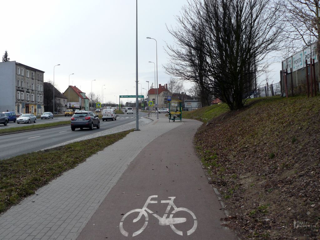 Ponownie zbliżamy się do ronda, które łączy ulice Zjednoczenia i Trasę północną. Gdy je miniecie kolejny raz trafiacie na znaną już Wam ścieżkę, gdzie po niewielkim zbiegu i paru km prostego chodnika, dwóch rondach ponownie wrócicie na najważniejszą część trasy czyli podbieg na ulicy Sulechowskiej.