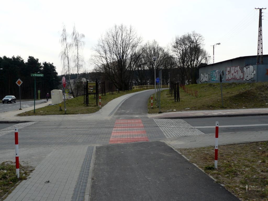 Niestety jest to duży minus tej trasy. Jeśli lubicie robić mocne interwały w tym właśnie miejscu będziecie musieli zwolnić, aby rozejrzeć się czy nikt nie chce Was przejechać. Jeśli jednak robicie inne warianty tj. kilkuset metrowe przebieżki, trasa nada się idealnie. Zaraz za przejściem kolejne 700 metrów trasy biegowej z lekko odbijającym do góry wzniesieniem.